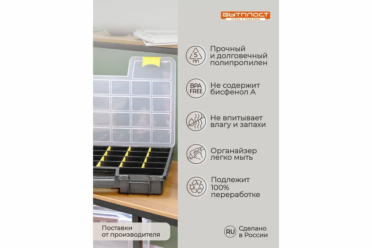 | Плюсы: | Органайзер полностью соответствует описанию. Защёлки рабочие, пластик не поцарапан. Всё целое, выглядит надёжно. |