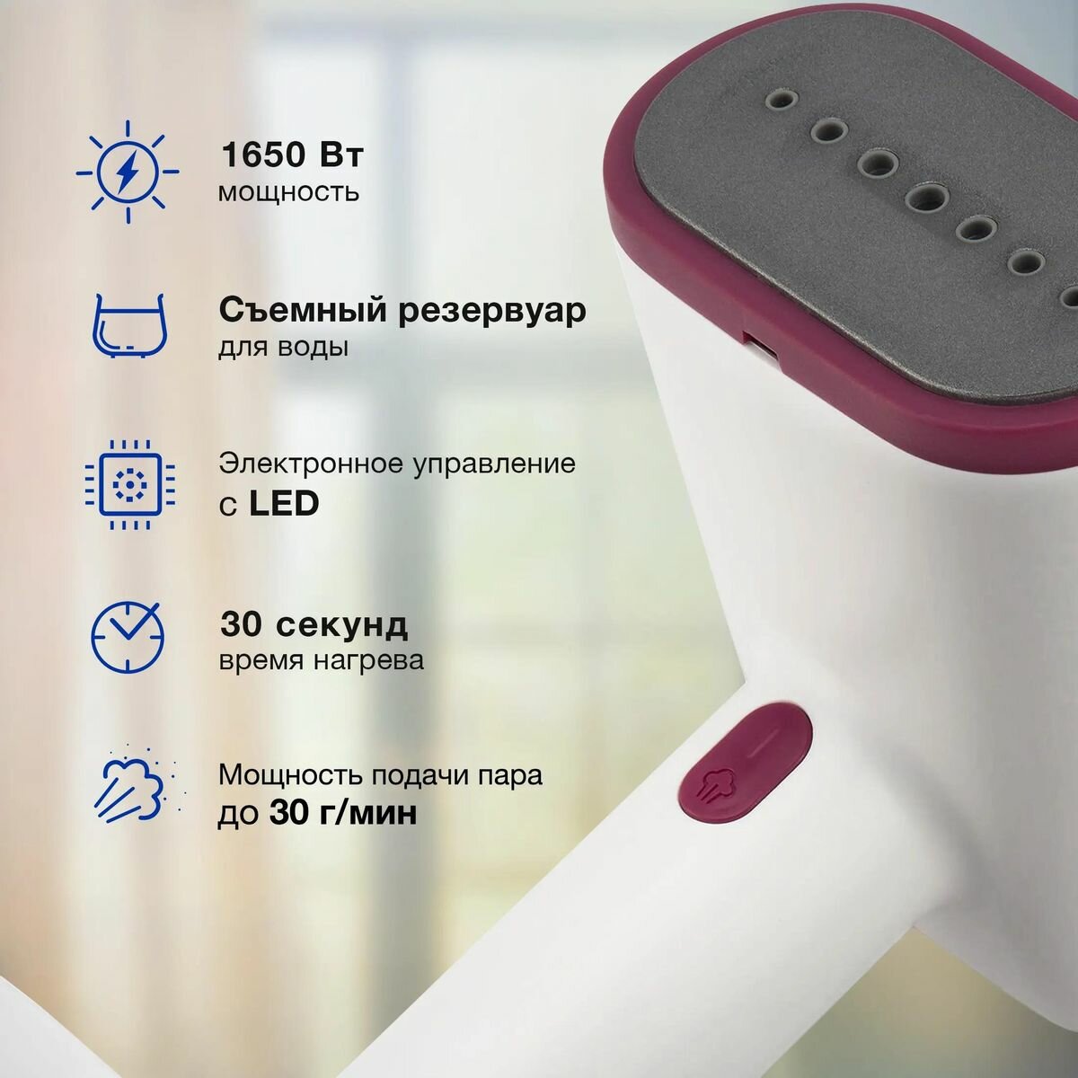 Отпариватель ручной Hyundai H-HS02890, белый / вишневый