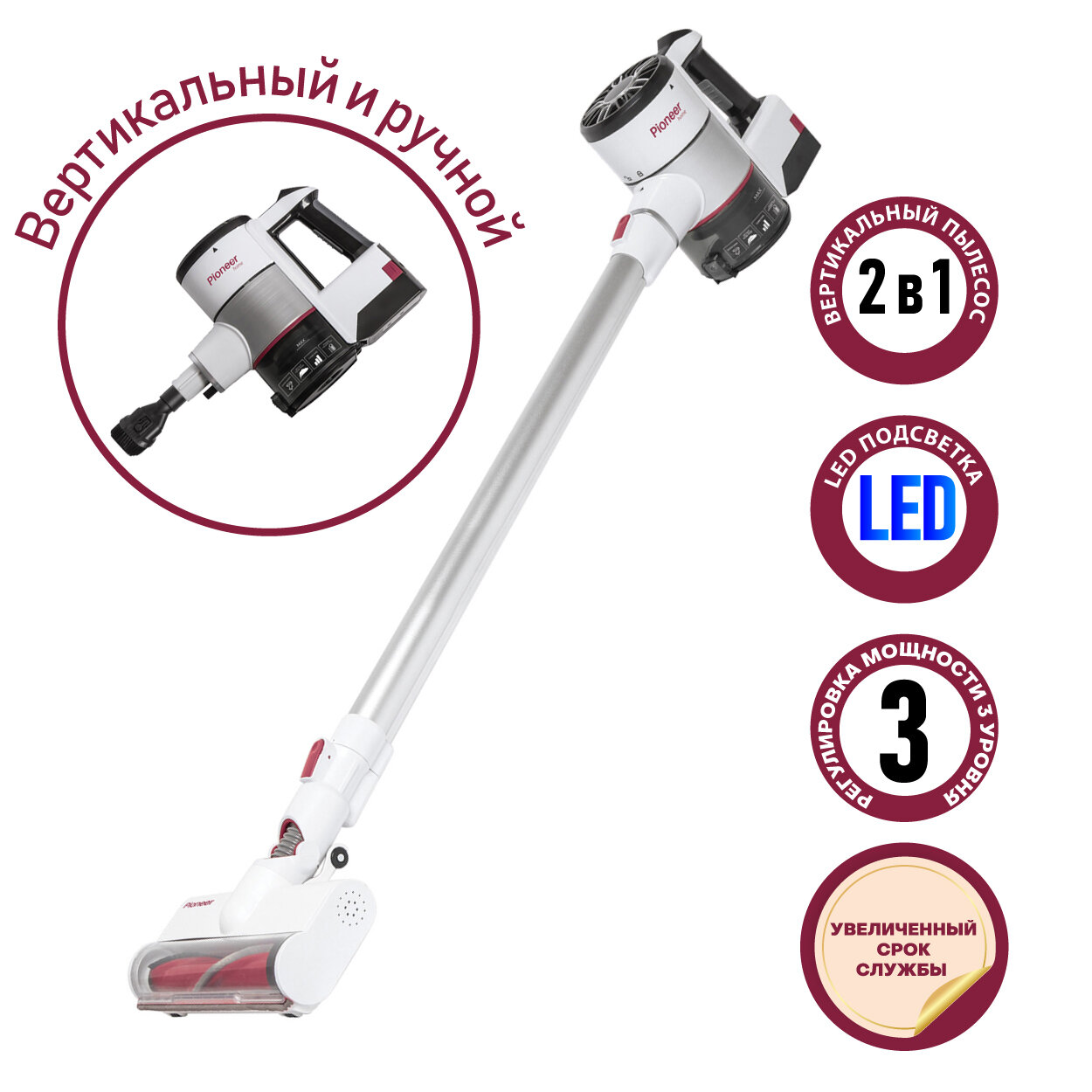 Вертикальный беспроводной пылесос Pioneer 140Вт,турбощетка с LED подсветкой и независимым электроприводом, 3 насадки