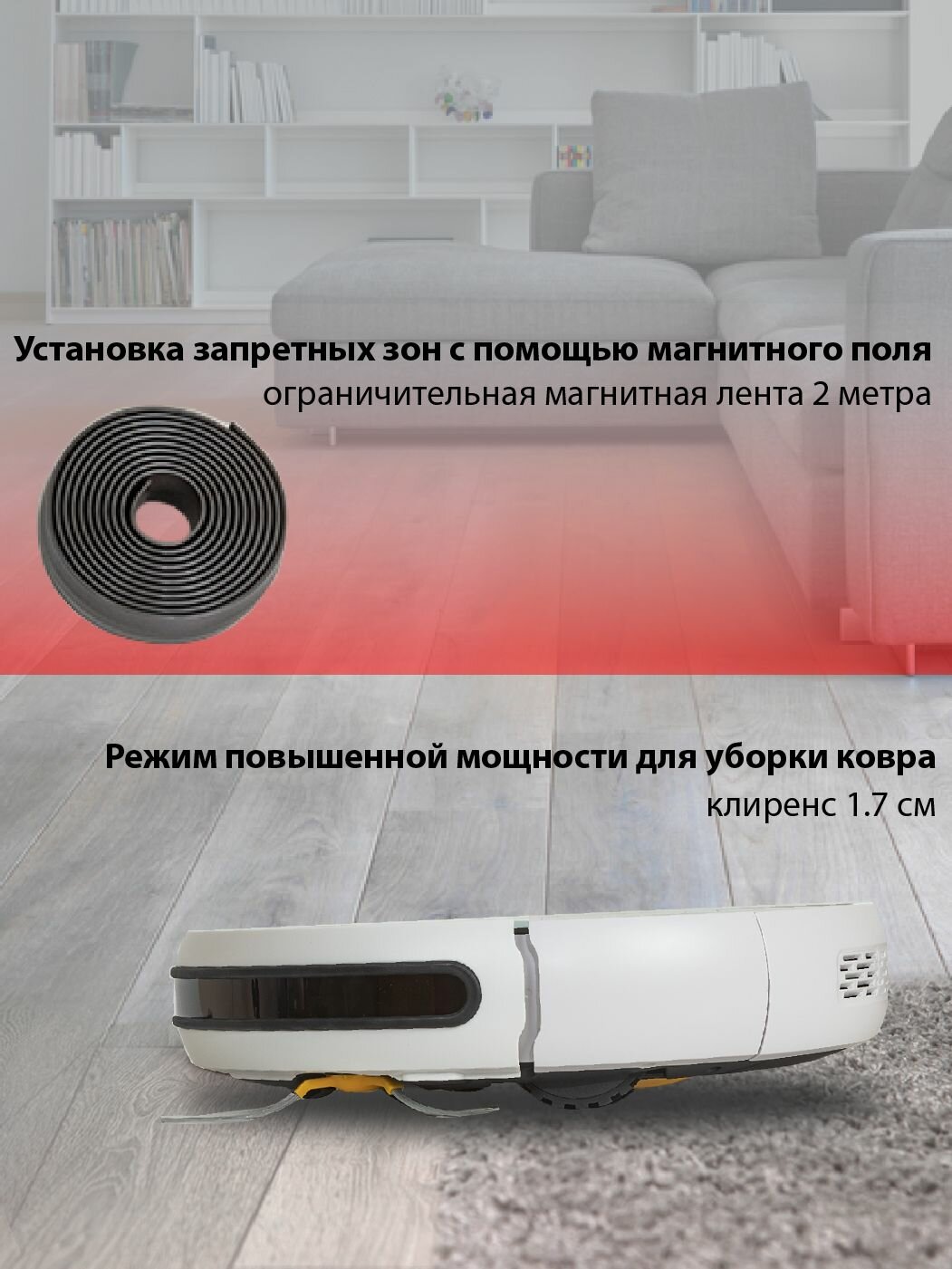 | Ограничитель зоны уборки | магнитная лента |