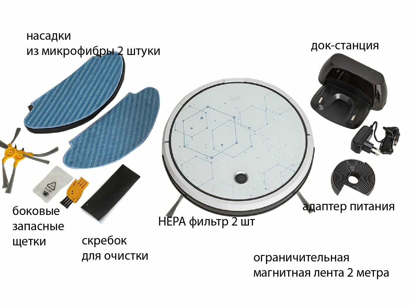 СохранитьРобот - пылесос JVC 2 в 1 сухая и влажная уборка, 4 режима, турбо щетка, HEPA фильтр, голосовой помощник, смартфон-управление Smart life, Wi-Fi интересное: