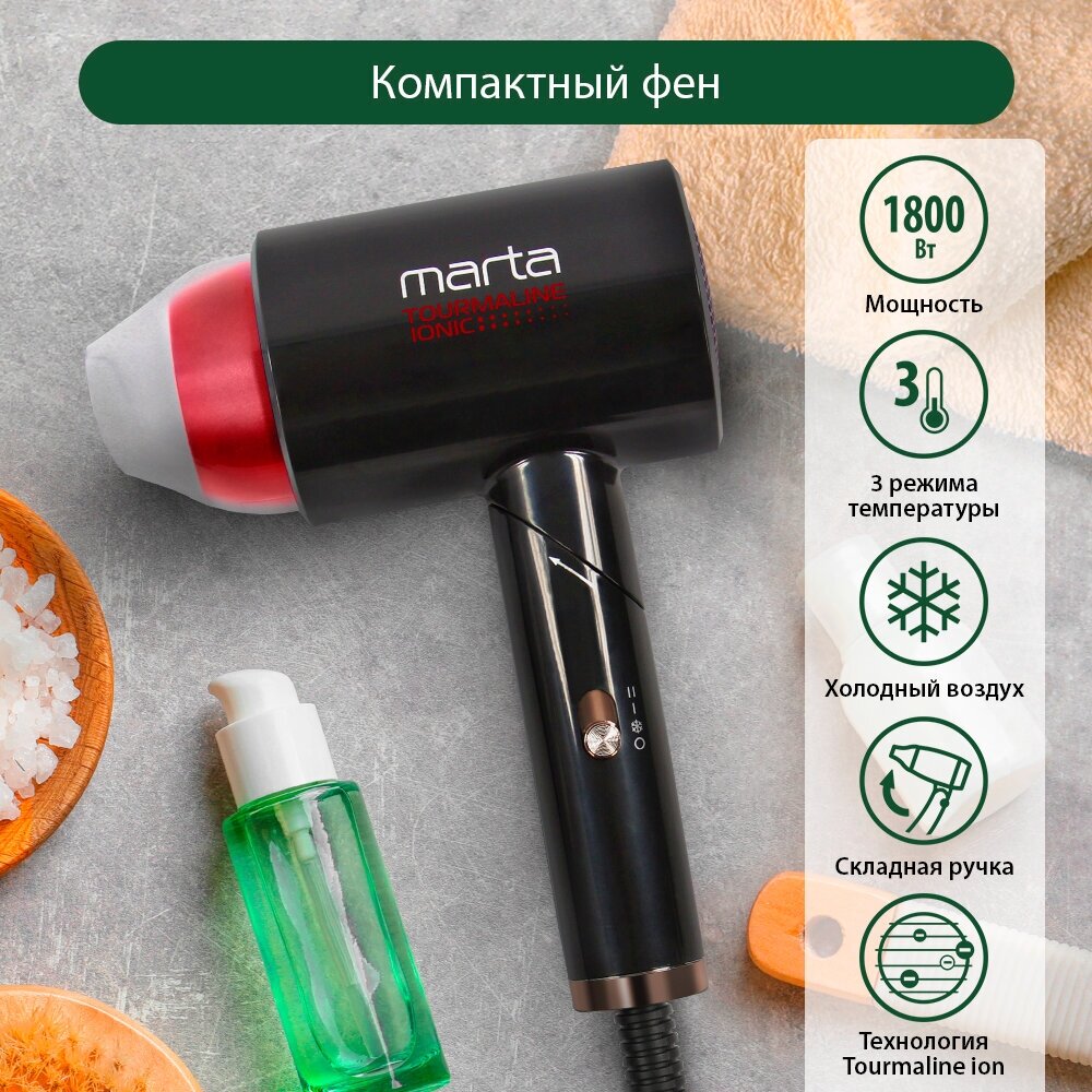 Фен MARTA MT-HD1403A Технология tourmaline ionic черный коралл