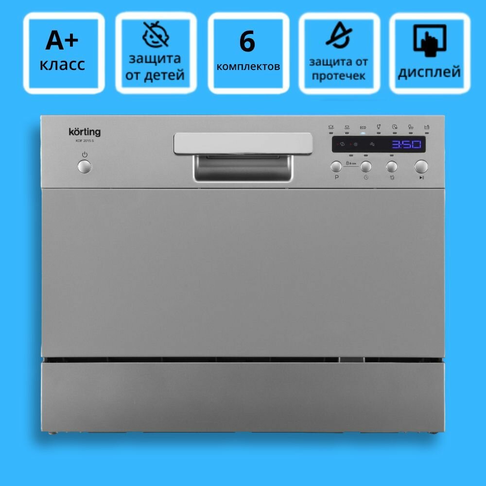 Компактная посудомоечная машина KORTING KDF 2015 S, 7 программ мойки, камера на 6 комплектов, защиты от протечек AquaControl, таймер, функция 3 в 1