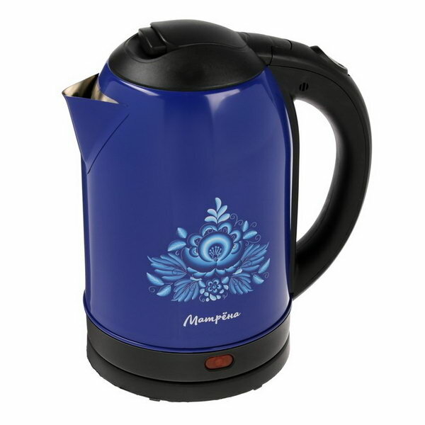 Матрёна Чайник электрический "Матрёна" MA-005, металл, 2 л, 1500 Вт, сине-чёрный с рисунком "Гжель"
