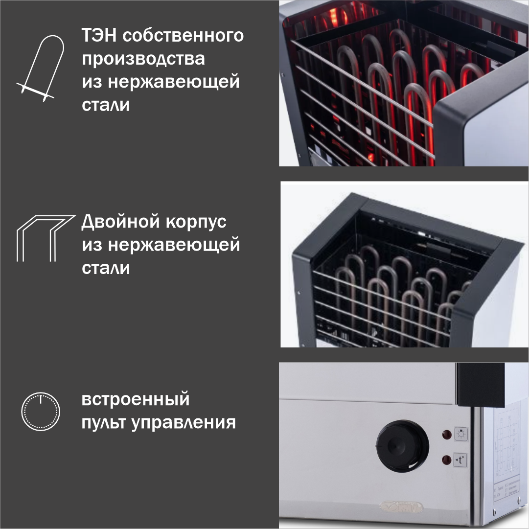 Электрокаменка УМТ Дельта ЭКМ 9,0 кВт (380/220 В, встроенный пульт, нержавеющая сталь)