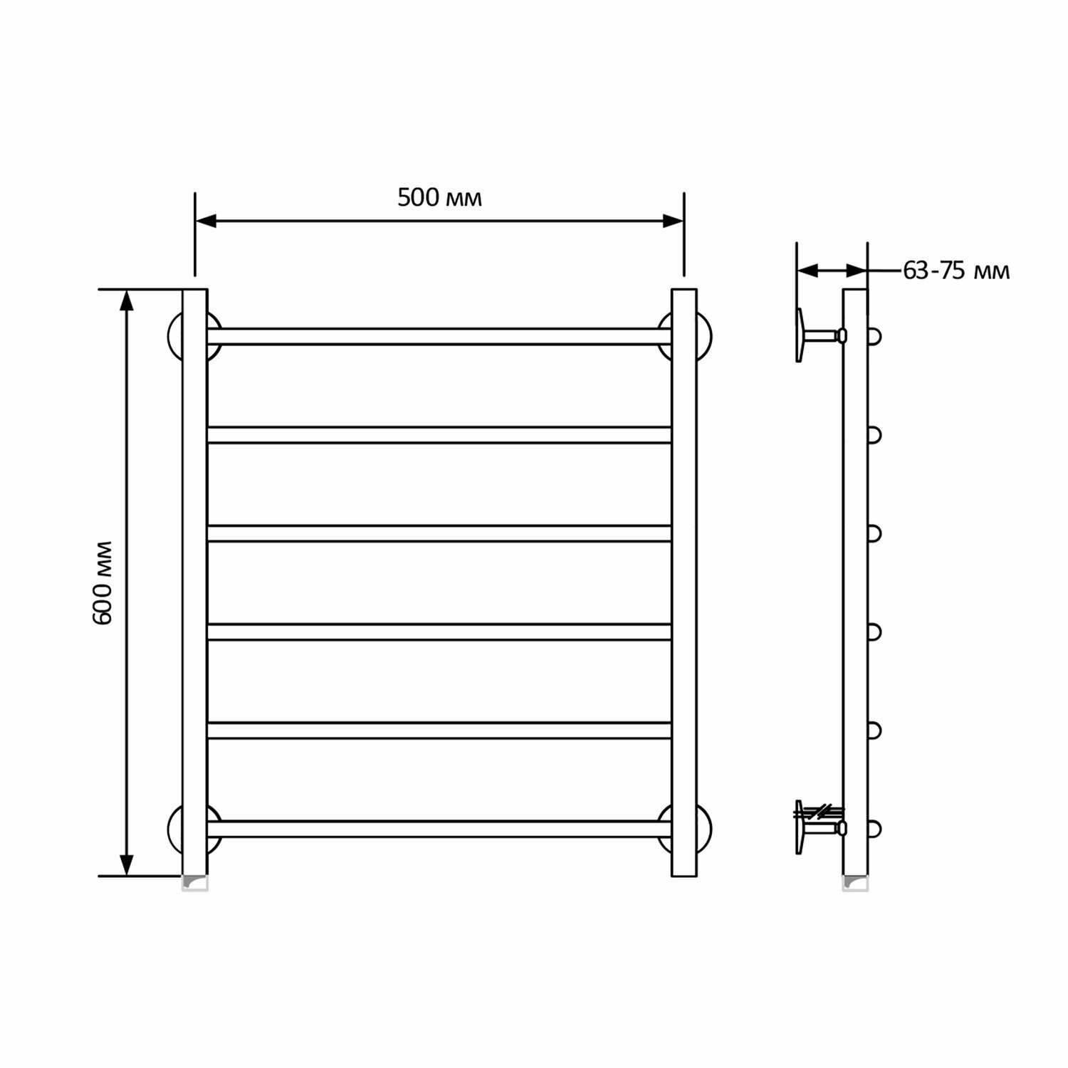 Полотенцесушитель Электрический Тругор Пэк сп 5 П 60х50 черный ВГП