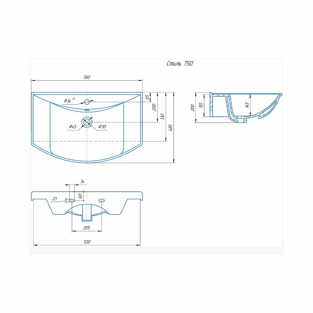 Aqwella Раковина 76,5х48,5 см Aqwella Стиль 4620008197470