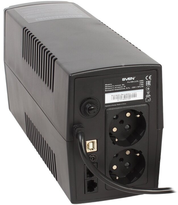 Источник бесперебойного питания SVEN Pro 650, 650VA (390W), 2 евророзетки, 2 розетки RJ45, SV-013844, 354289
