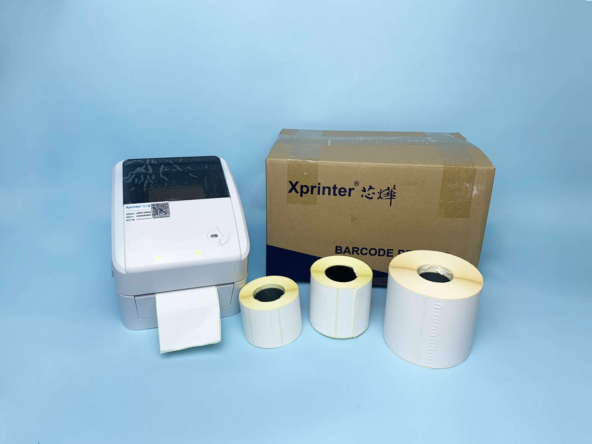Термальный принтер этикеток блок питания Xprinter XP-420B (USB) белый