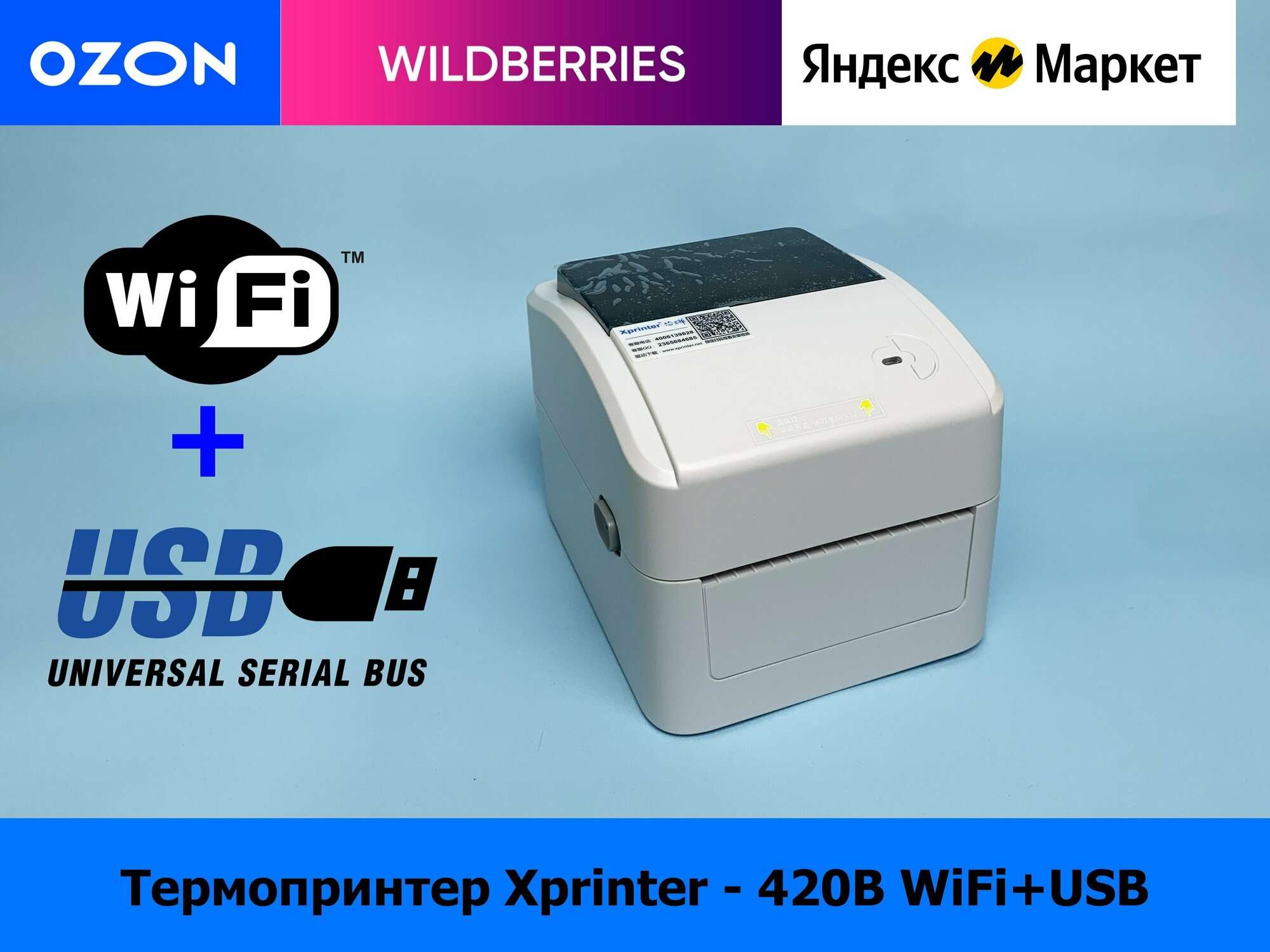 Термальный принтер этикеток Xprinter XP-420B (USB, Wi-Fi) белый
