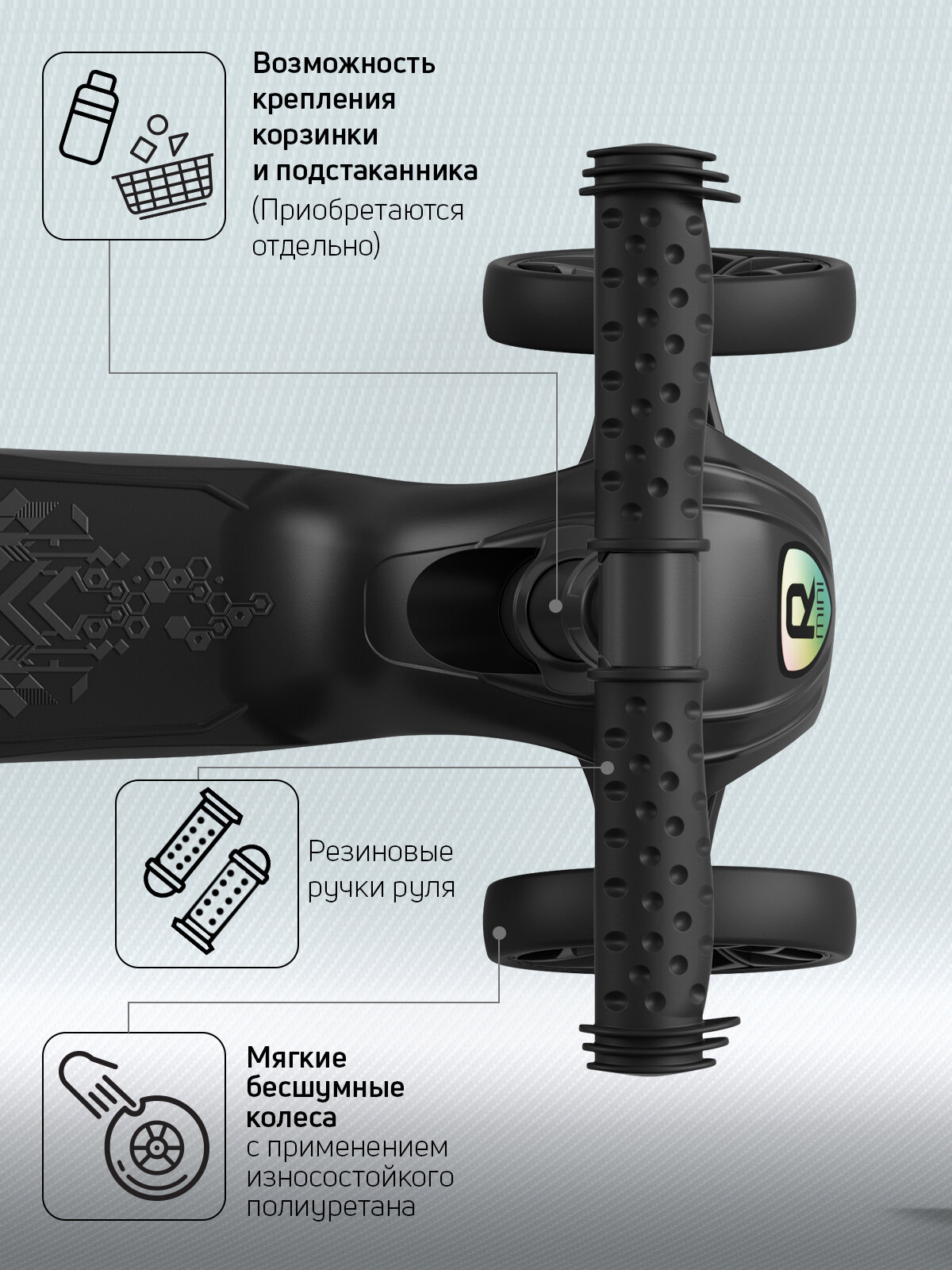 СохранитьСамокат, самокат трехколесный детский, с цветными ручками Buggy Boom Alfa Mini, черный интересное: