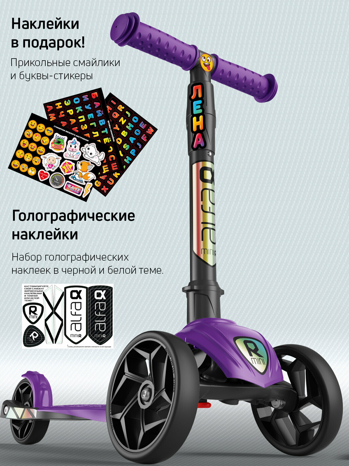 Самокат детский трехколесный с наклейками Alfa Mini R от Buggy Boom