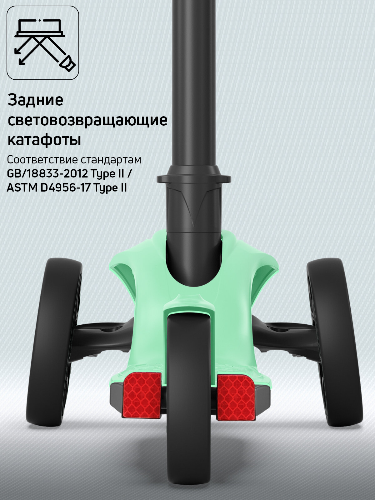 Самокат, самокат трехколесный детский, с цветными ручками Buggy Boom Alfa Mini R, светло зеленый