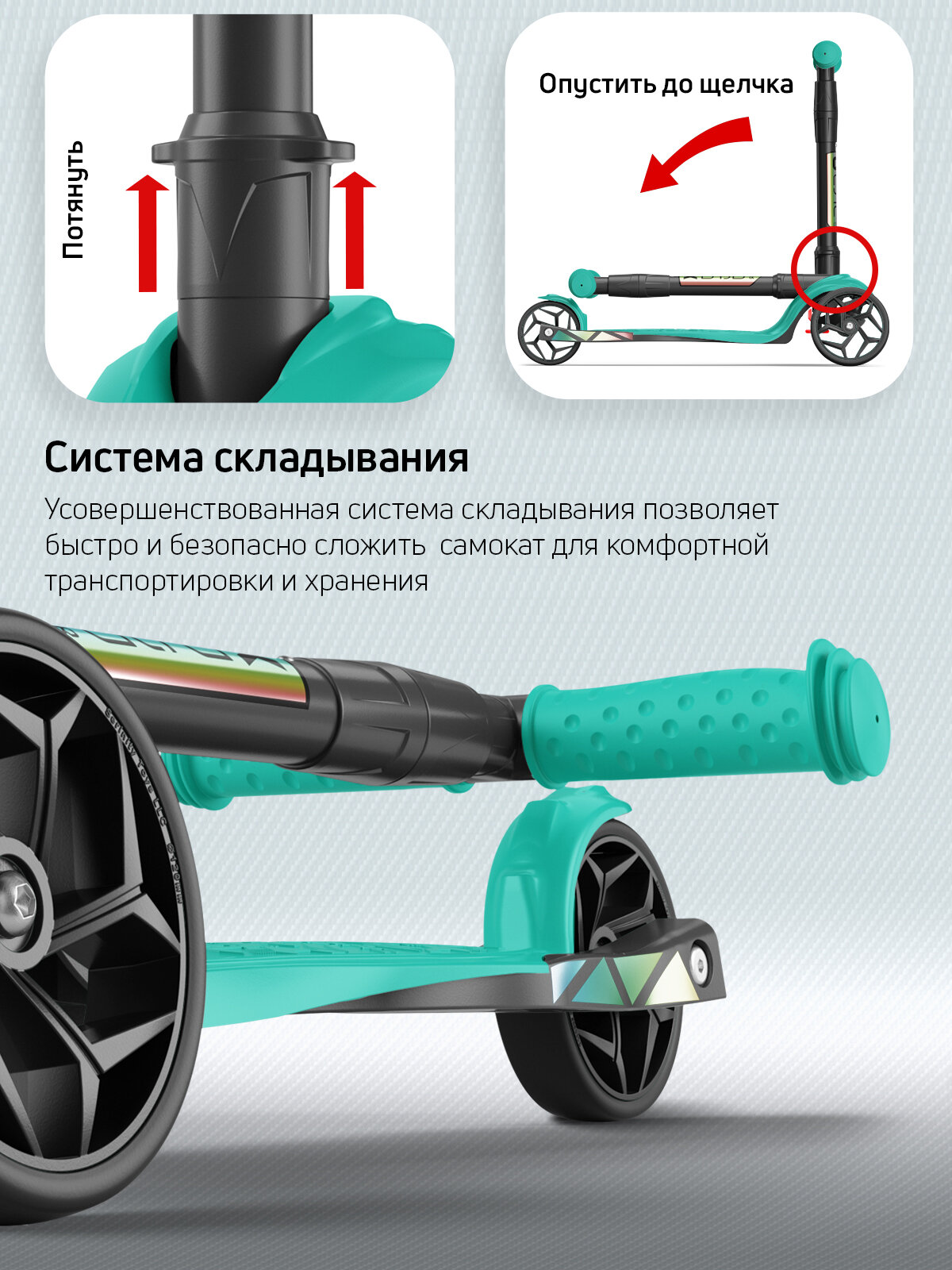 Самокат, самокат трехколесный детский, с цветными ручками Buggy Boom Alfa Mini, бирюзовый