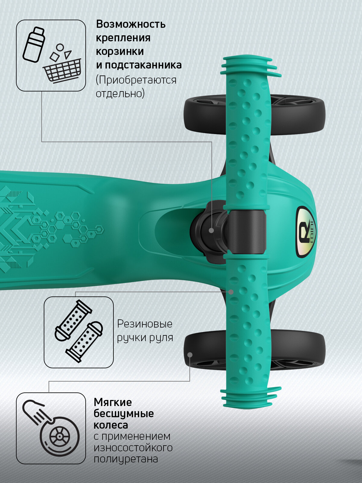 СохранитьСамокат, самокат трехколесный детский, с цветными ручками Buggy Boom Alfa Mini R, тифани интересное: