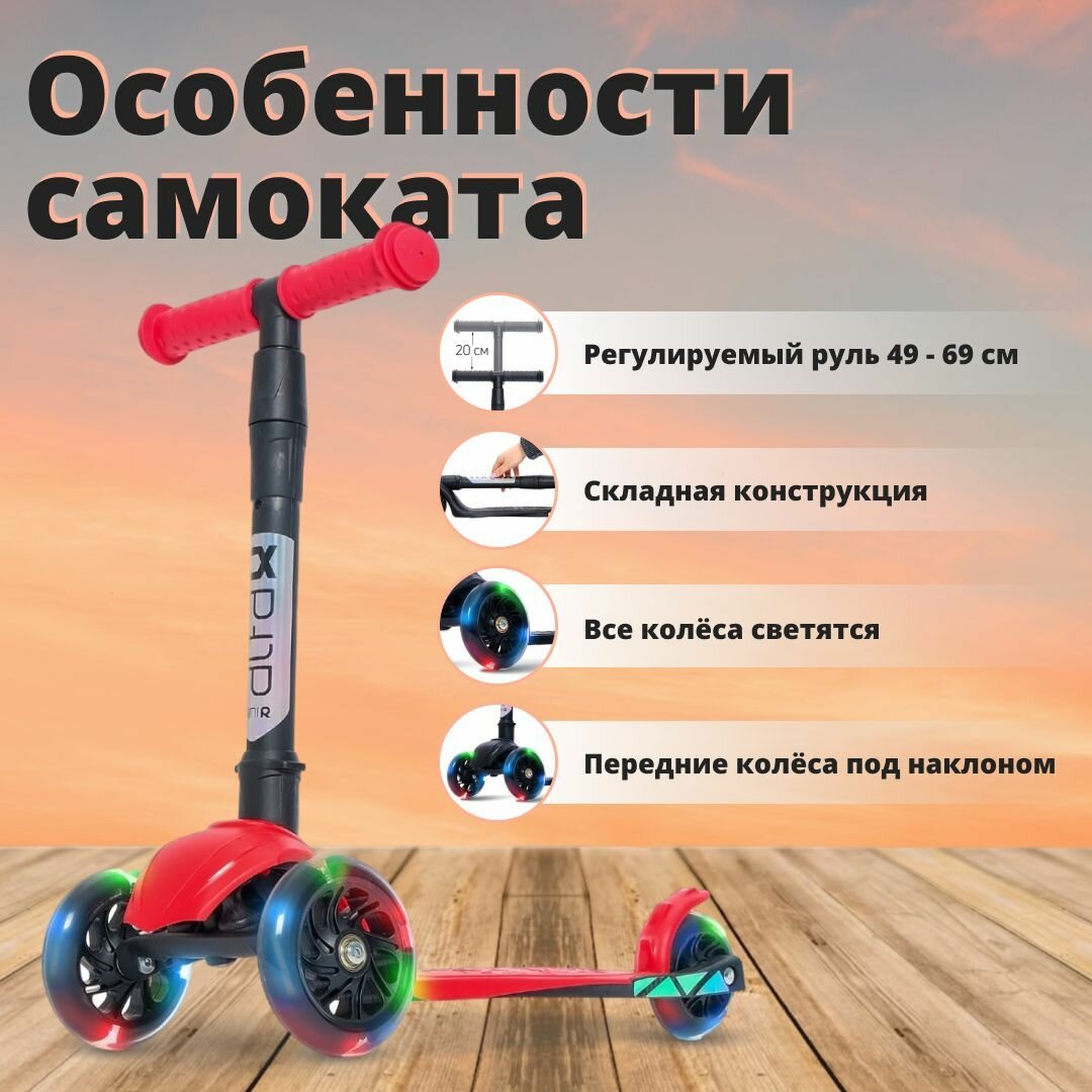 Купить Самокат, самокат трехколесный детский, с цветными ручками Buggy Boom Alfa Mini, красный
