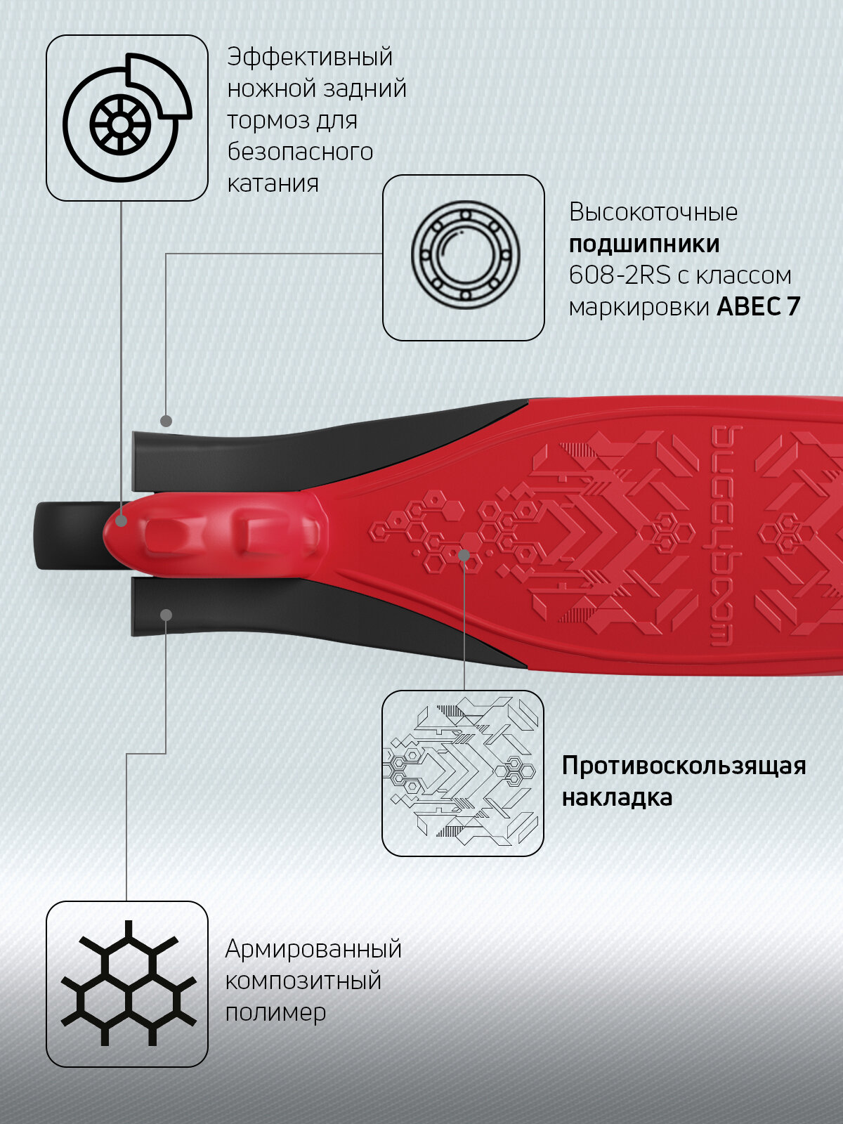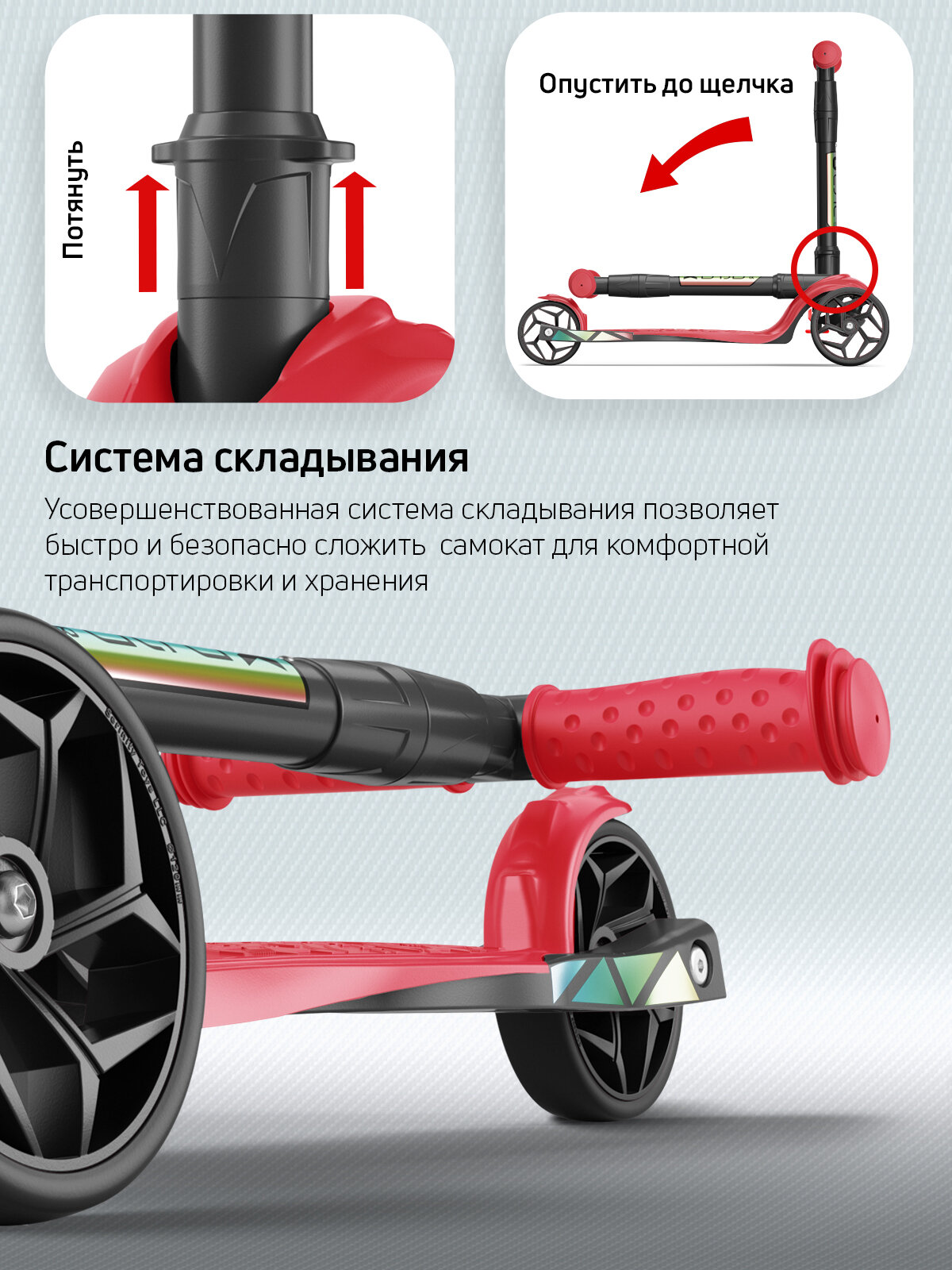 Самокат, самокат трехколесный детский, с цветными ручками Buggy Boom Alfa Mini R, рубиновый