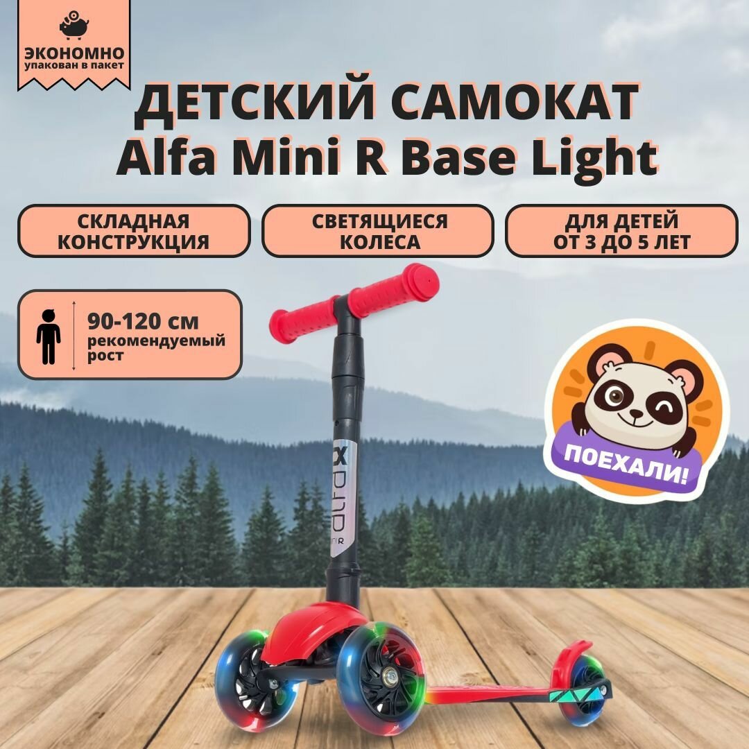 Самокат Alfa Mini R Base (красный 59) с не светящимися черными колесами в коробке. арт. 004-2159
