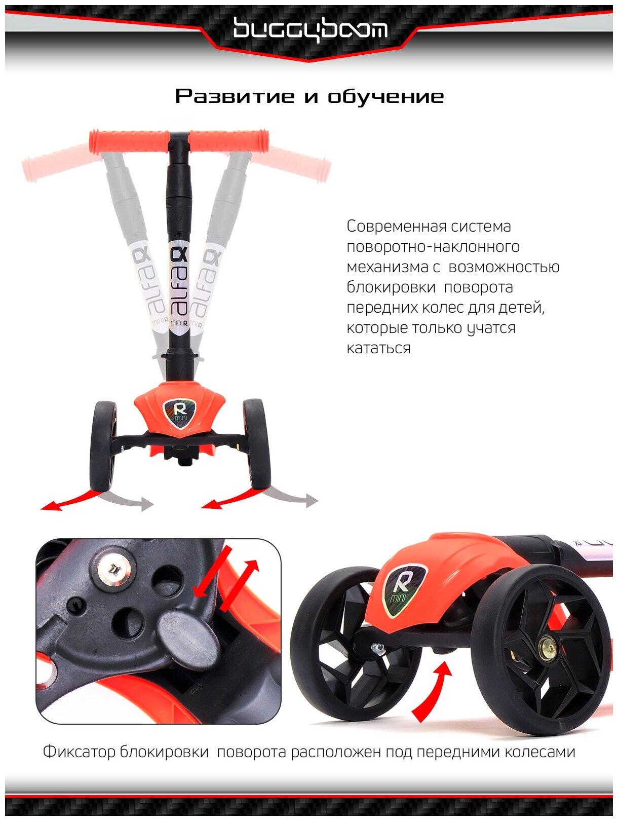 Самокат трехколесный детский Buggy Boom Alfa Mini R, морковный (004-2053)