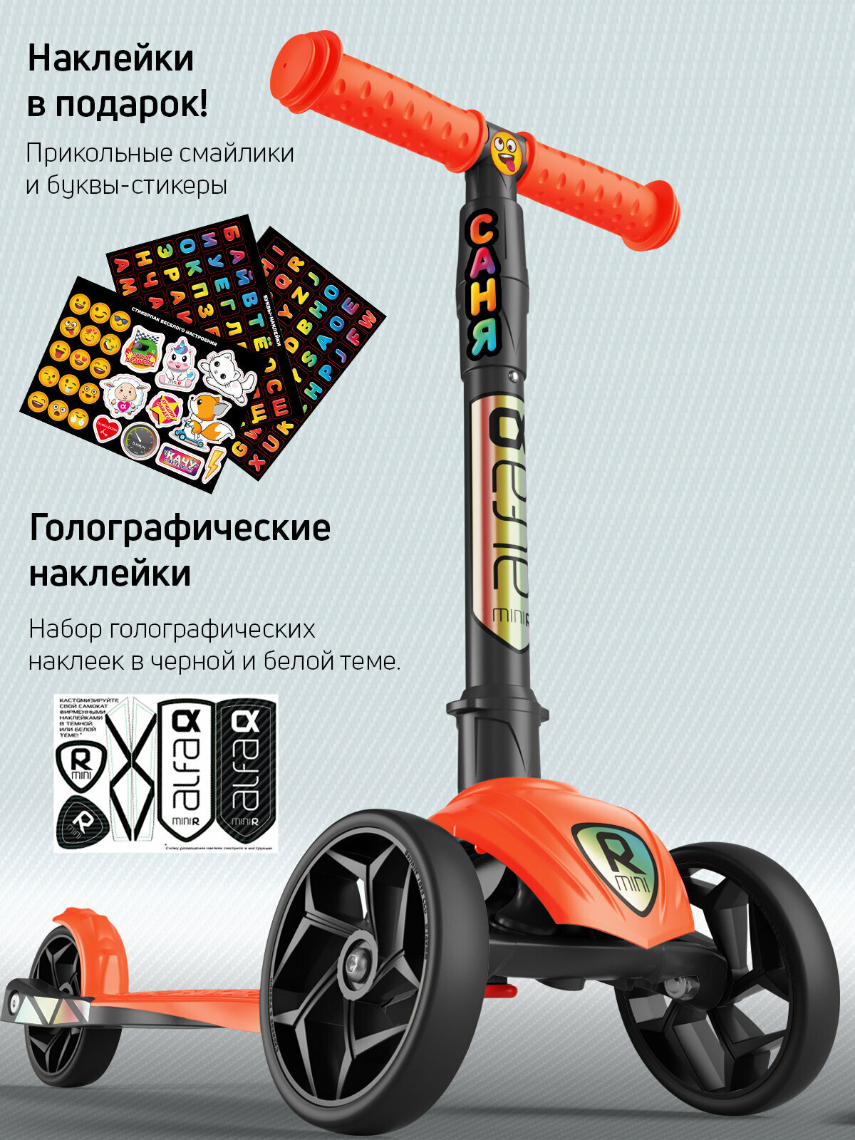 Самокат детский трехколесный с наклейками Alfa Mini R от Buggy Boom