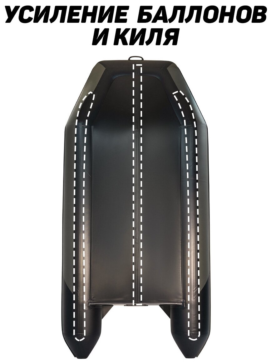 Лодка пвх под мотор Броня 320СК (слань+киль в комплекте) с усилением графит/черный
