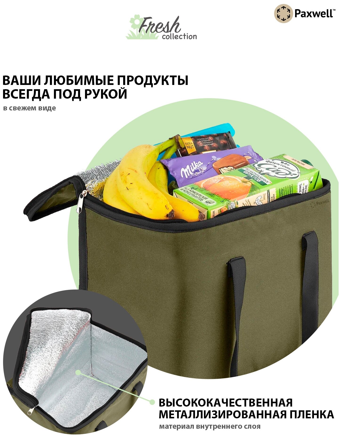 Термосумка с ручками Paxwell Фреш 1M средняя, цвет хаки, черная окантовка FRTB1M-101786 интересное: