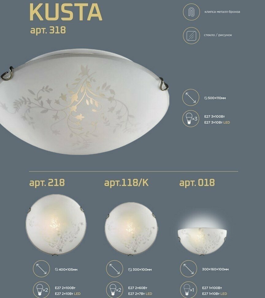 Ниже Вы можете прочитать отзывы на Светильник настенно-потолочный KUSTA 118/K, ознакомится с подробными характеристиками, посмотреть интересные обзоры и фотографии на Светильник настенно-потолочный KUSTA 118/K.