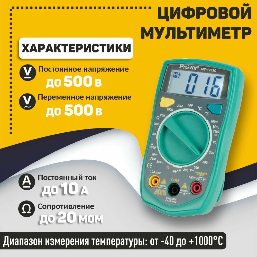 Ниже Вы можете прочитать отзывы на Мультиметр Pro'sKit MT-1233C-C, ознакомится с подробными характеристиками, посмотреть интересные обзоры и фотографии на Мультиметр Pro'sKit MT-1233C-C.