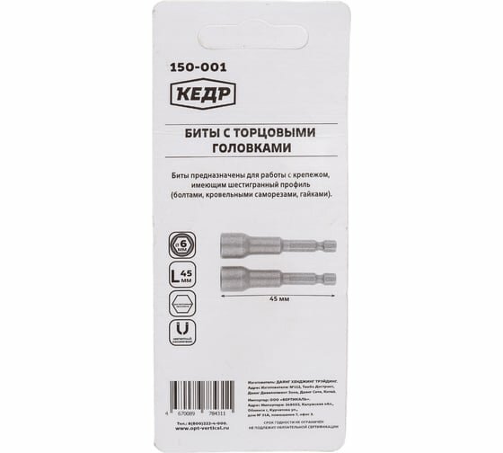 Биты с торцевыми головками Кедр, 6 x 45 мм, 2 шт интересное: