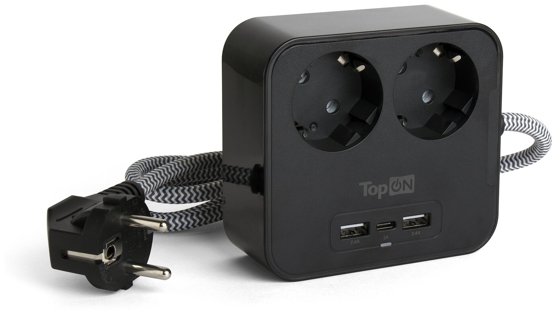 TopOn Сетевой фильтр TOP-PWS2 на 2 розетки с 2 USB-A и USB-C, 4000W, 1.5 м Черный TOP-PWS2B