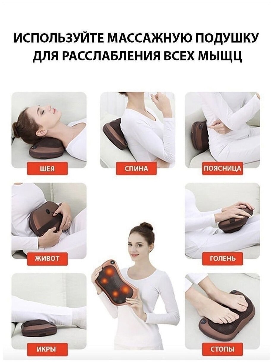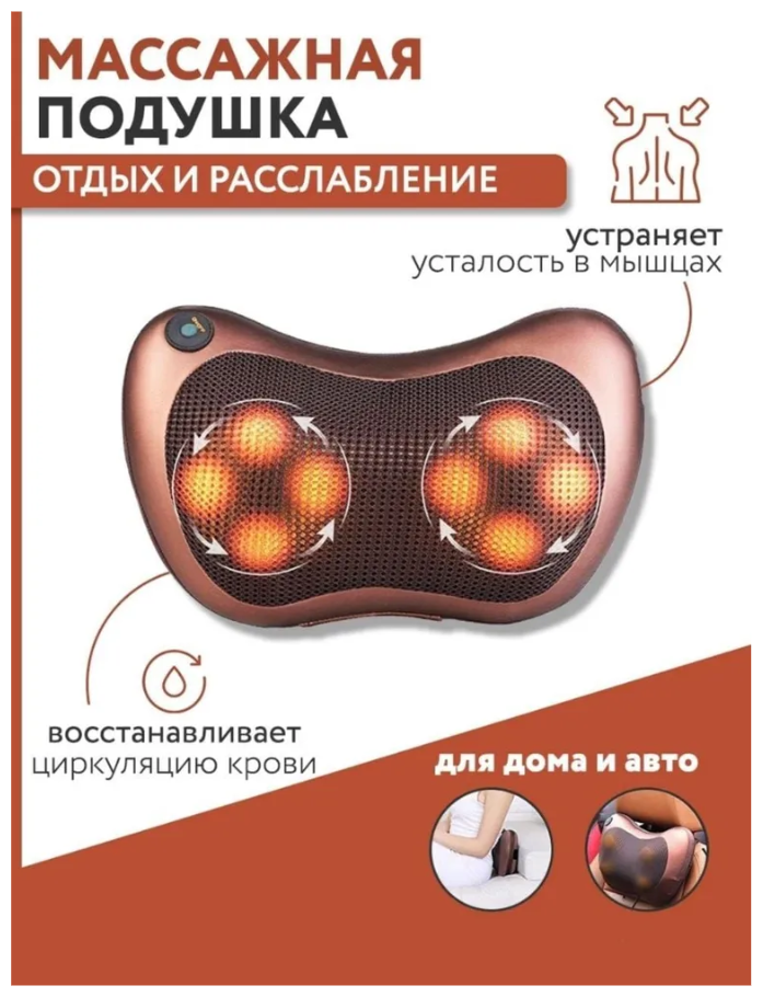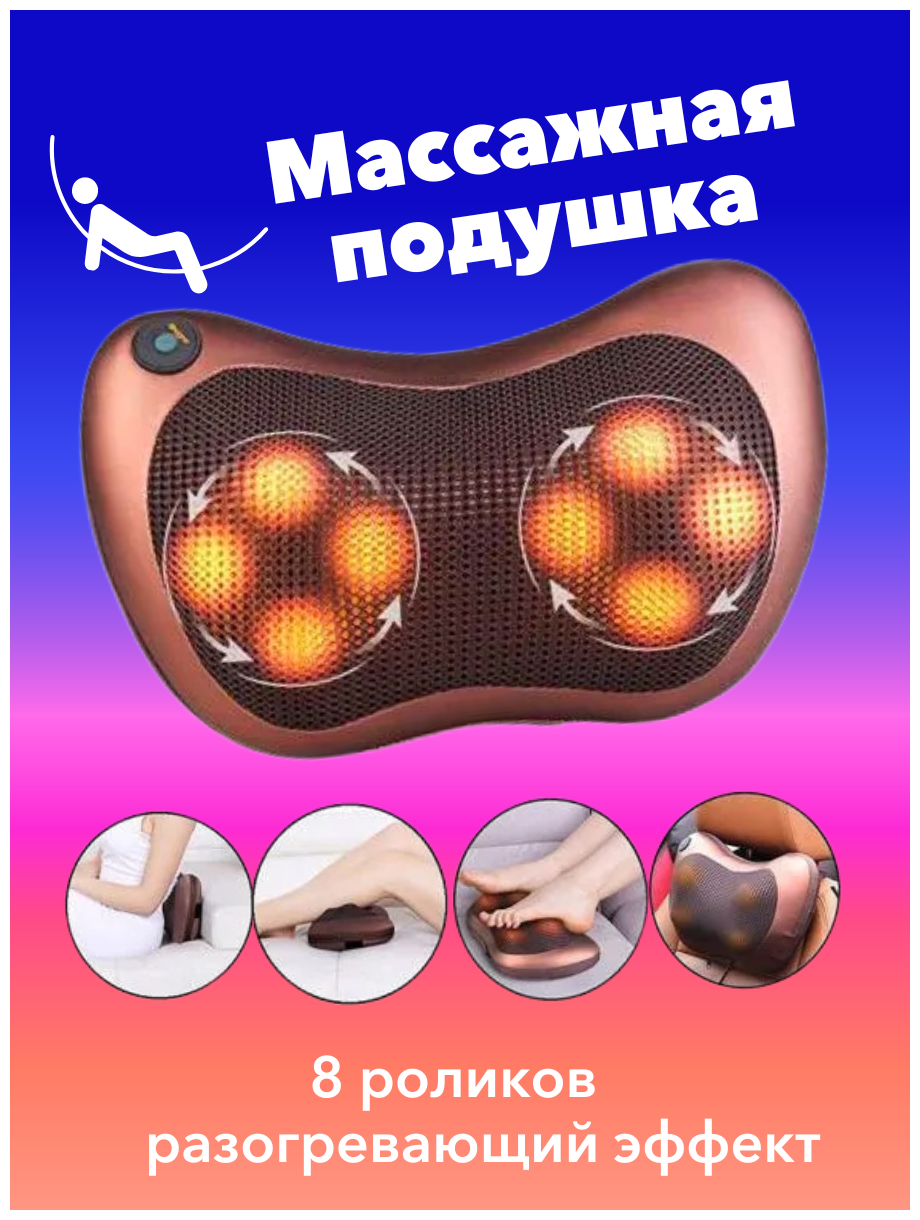 Массажер подушка для шеи, ног, спины, рук, плеч и поясницы / Массажер подушка релакс с прогревом для дома и автомобиля Massage Pillow 8028 интересное: