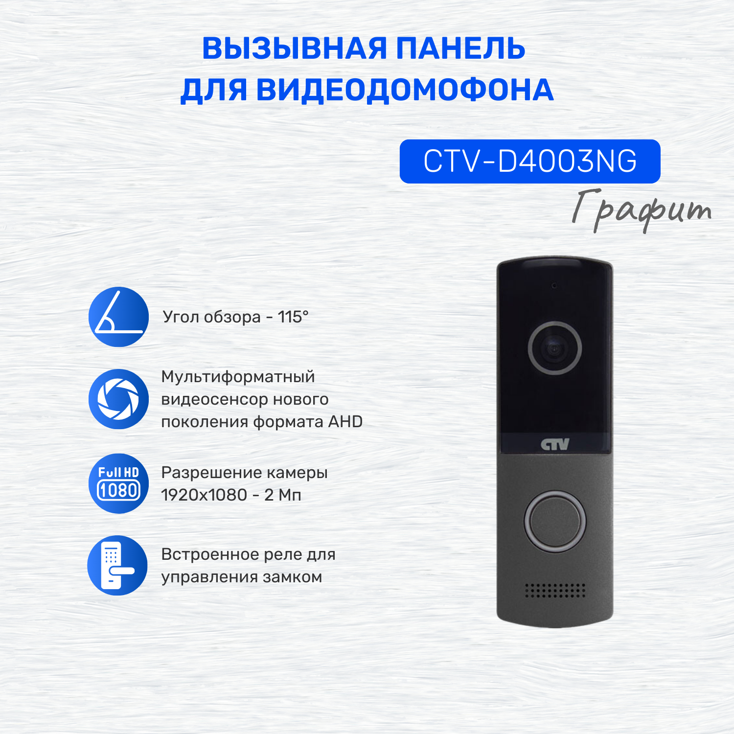 Вызывная панель видеодомофона CTV-D4003NG - Графит - Видеокамера 2Мп, 115 градусов - ИК-подсветка - Реле для управления любым замком