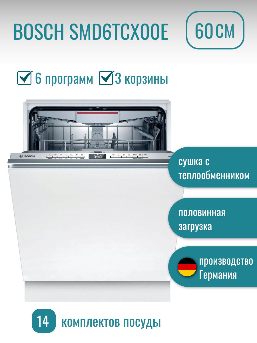Встраиваемая посудомоечная машина BOSCH SMD6TCX00E интересное: