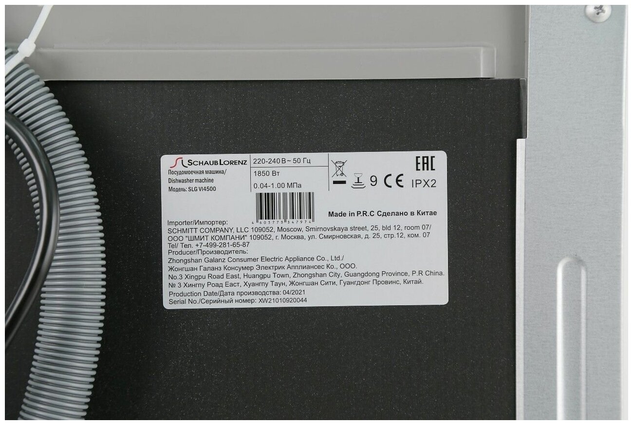 Встраиваемая узкая посудомоечная машина Schaub Lorenz SLG VI4500