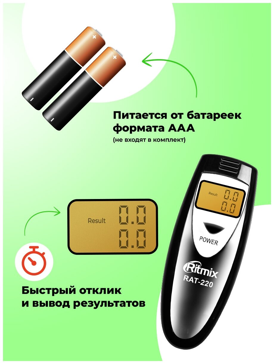 Купить Устройство мониторинга активности и состояния Ritmix RAT-220 Black Алкотестер