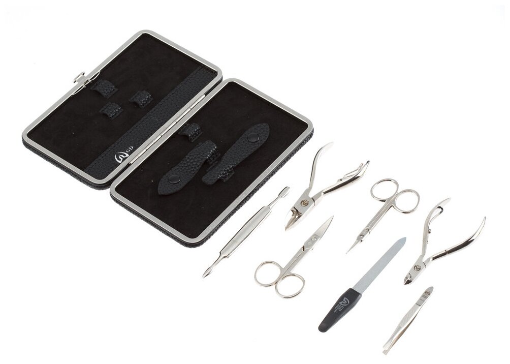 | Состав набора | кусачки для кутикулы, кусачки для маникюра, ножницы для кутикулы, ножницы для ногтей, пилка, пинцет, пушер для кутикулы, кусачки для ногтей, шабер двусторонний |