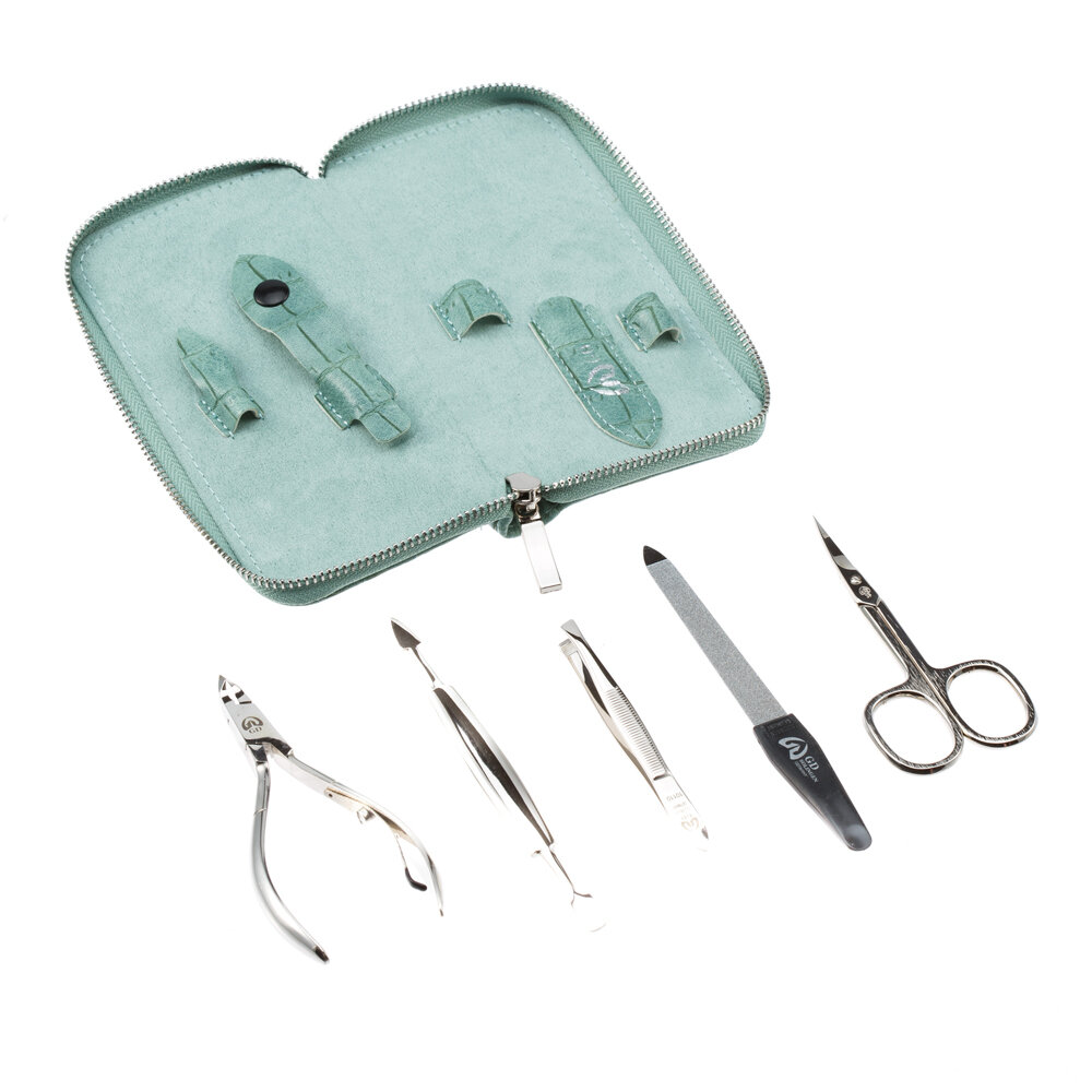 Купить Маникюрный набор GD, 5 предметов, Футляр искусственная кожа, цвет зеленый, фактура - крокодил (2153GRCR)