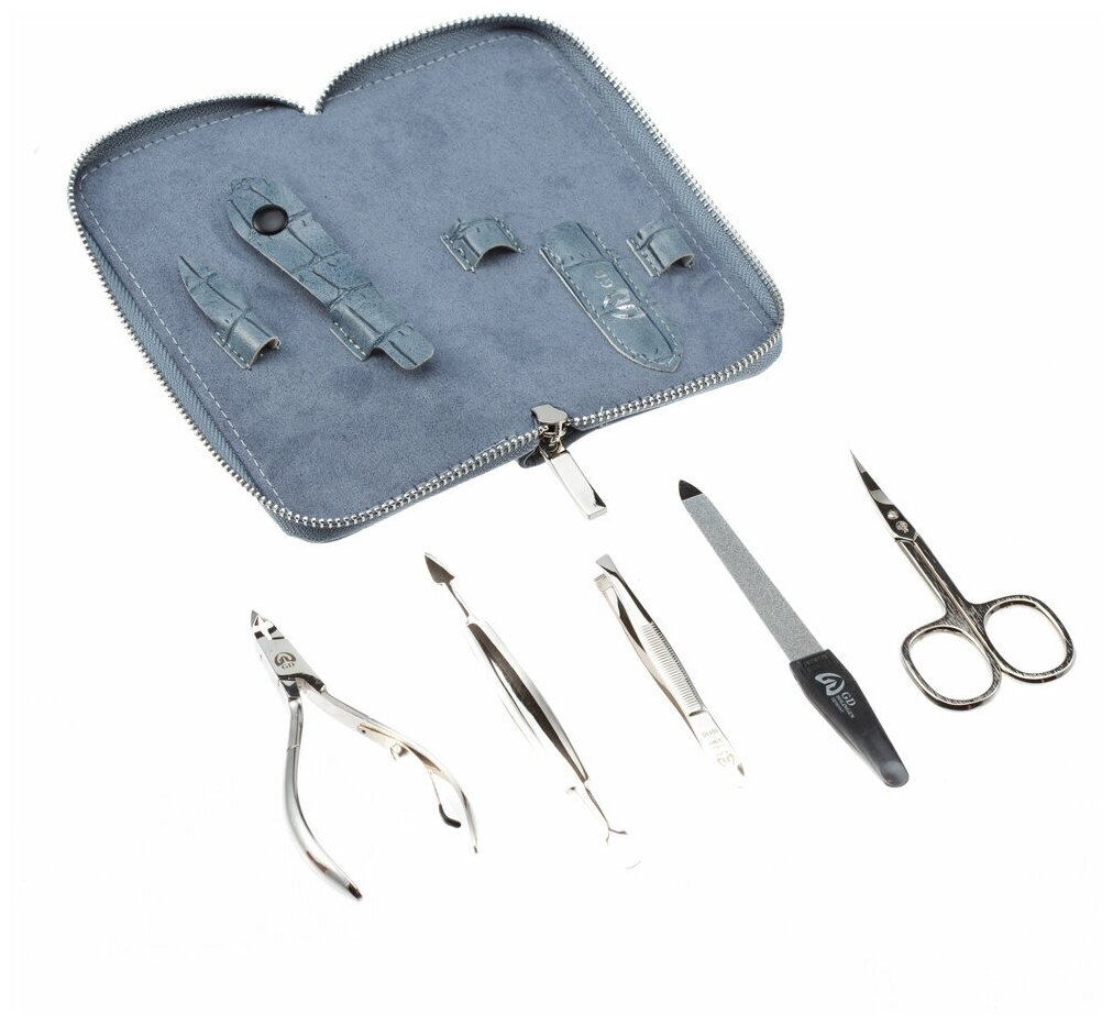 Купить Маникюрный набор GD, 5 предметов, Футляр искусственная кожа, цвет серо-голубой, фактура - крокодил