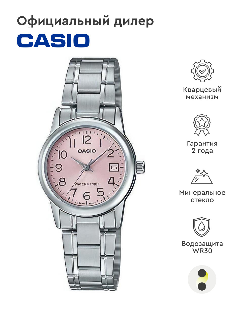 Наручные часы CASIO Collection LTP-V002D-4B, розовый, серебряный