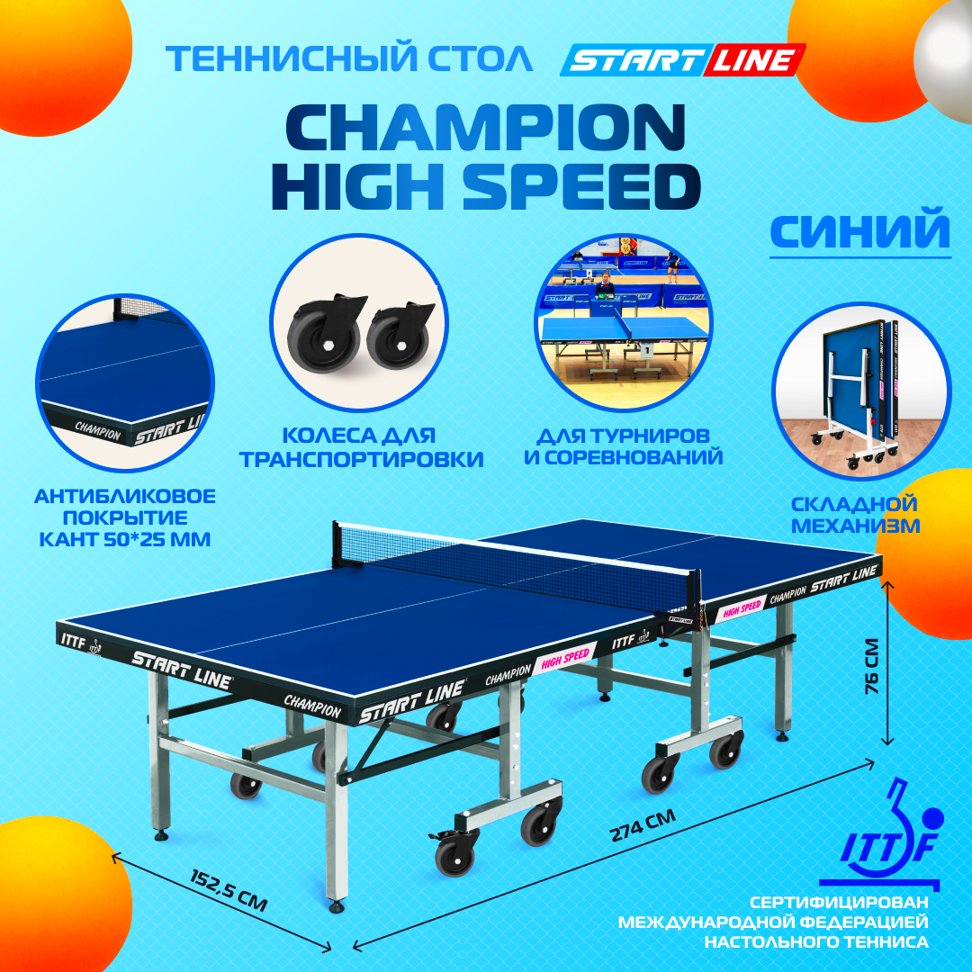 Купить Стол теннисный Start Line Champion HIGH SPEED, профессиональный, складной, с колесами