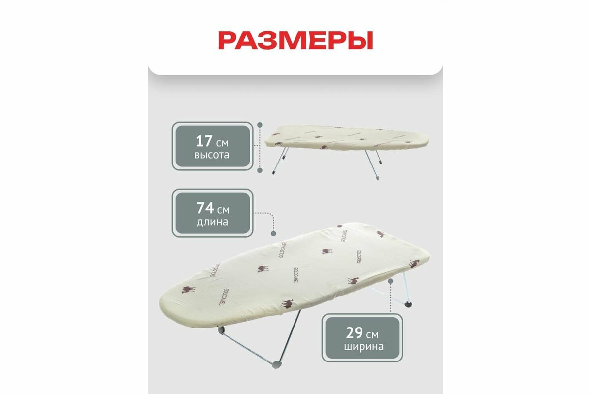 | Размеры гладильной поверхности (ДхШ) | 74 x 29 см |