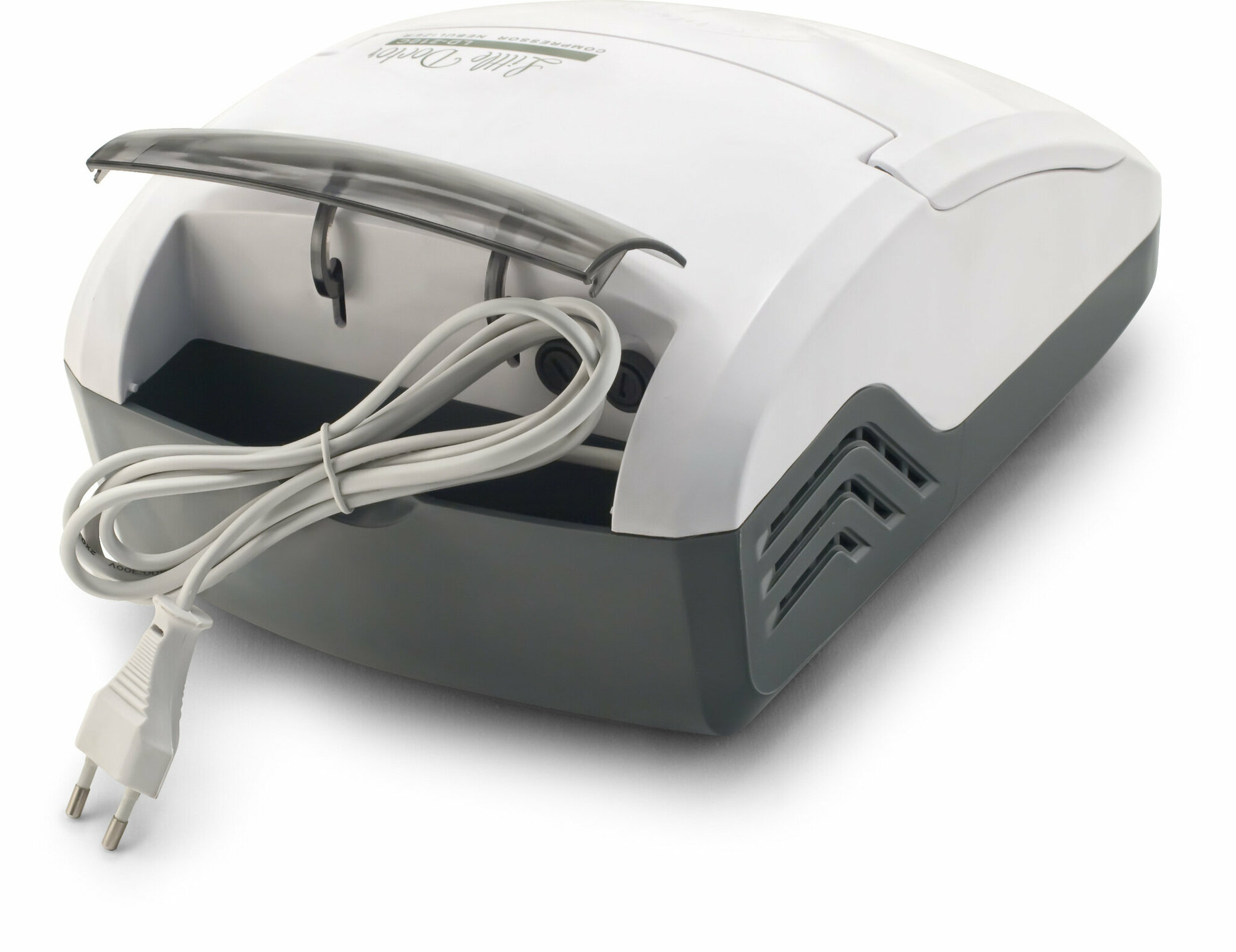 | Отзыв: | Отличная штука! Взрослая и детская маска в комплекте. Три распылителя лекарства для зон дыхательной системы. Аксессуары помещаются в отсек с крышкой, удобно для хранения, но возить с собой всё таки лучше следующую модель. |