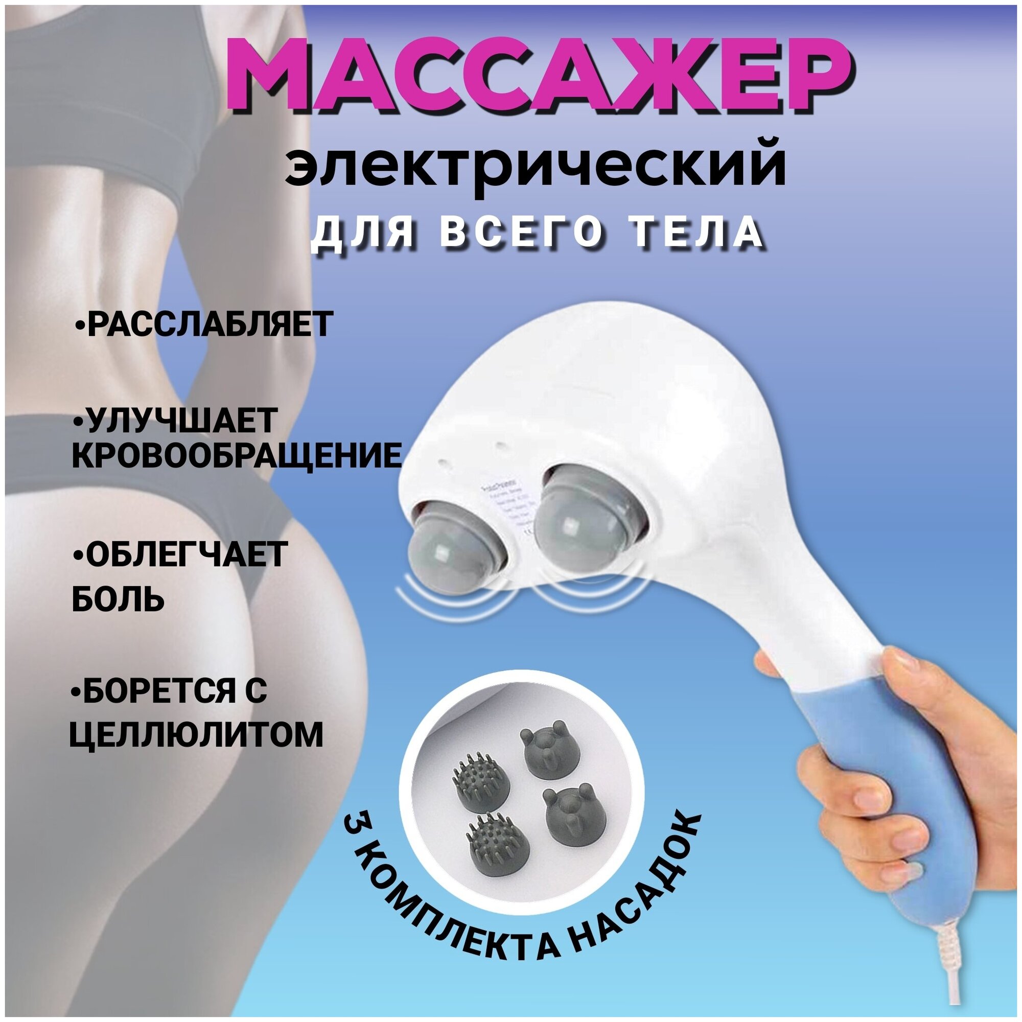 | Подробная комплектация | Массажёр, 3 пары насадок |