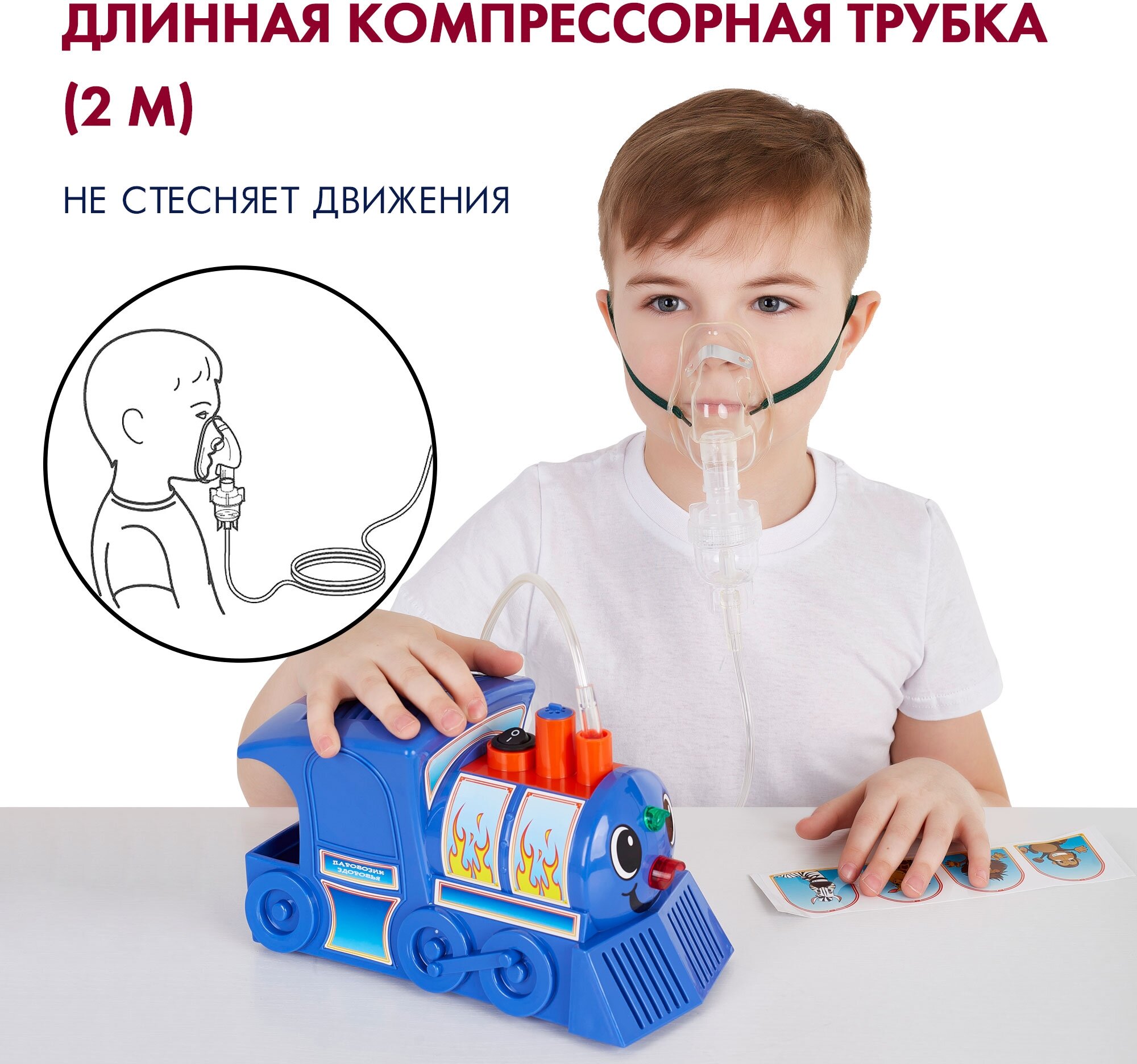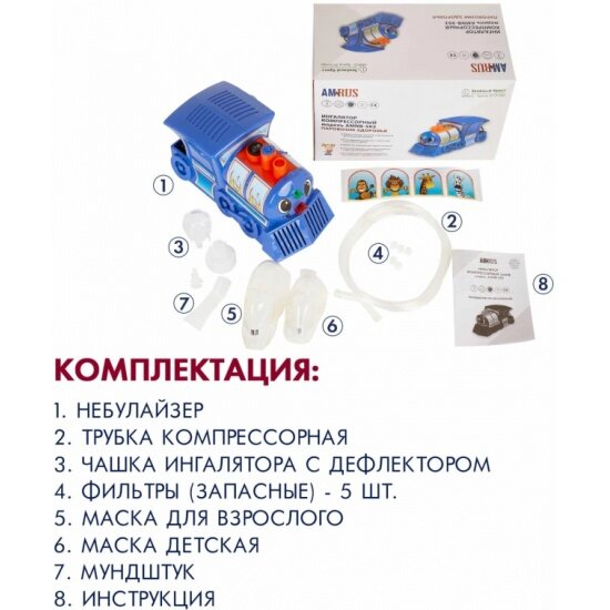 Amrus AMNB-502 / Амрос - компрессорный ингалятор, детский, Паровозик Здоровья