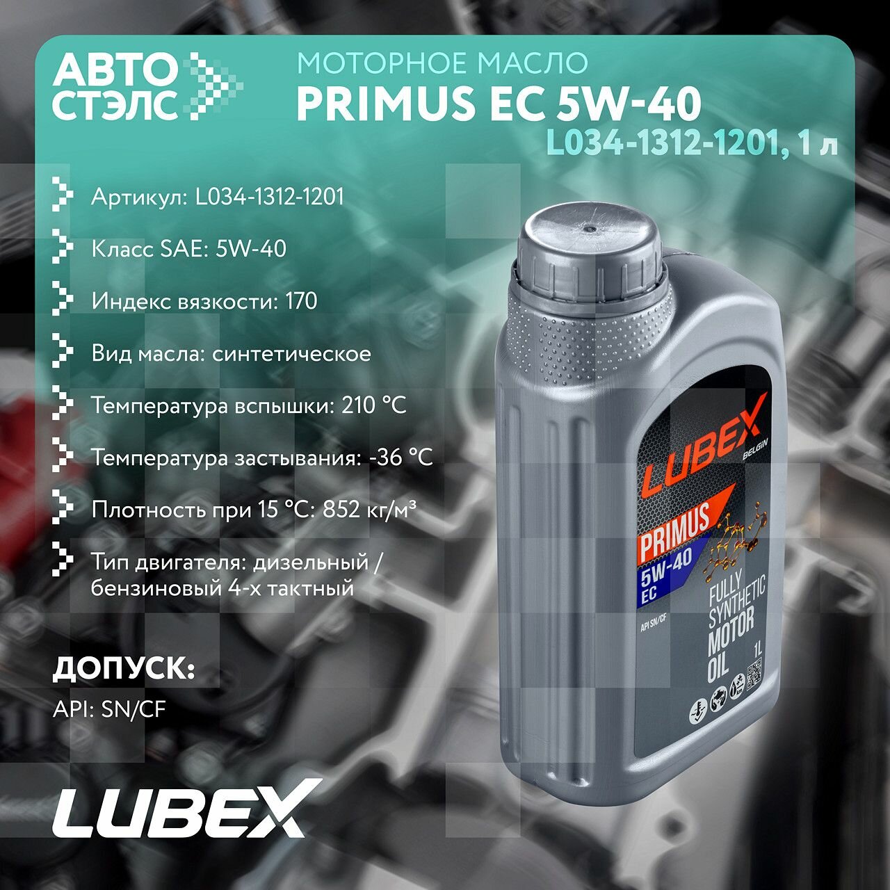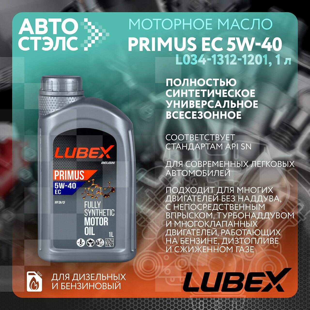 Моторное масло PRIMUS EC 5W-40 1л LUBEX L034-1312-1201