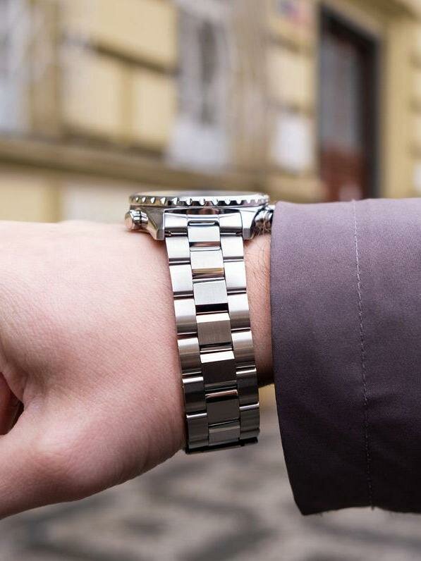 Размер браслета установлен не туго, часы гуляют. Но сегодня на катке не сильно упал, встал и поехал дальше. А супруга в след - часы потерял! я в шоке! такая сложная и надежная застежка, качественные и толстые звенья, а браслет сорвался возле корпуса! Смотрите фото |