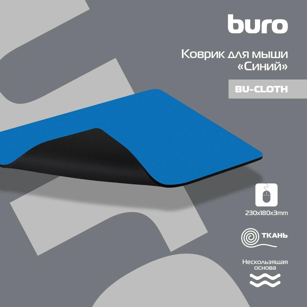 Коврик для мыши Buro BU-CLOTH (S) синий, ткань, 230х180х3мм [bu-cloth/blue] интересное:
