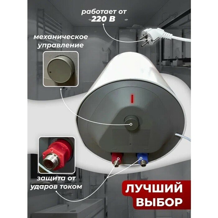 | Минусы: | Отсутствует в комплекте предохранительный клапан и болты крепления водонагревателя, в инструкции написано что клапан и крепление входят в комплект, обман один да и только не советую покупать! |