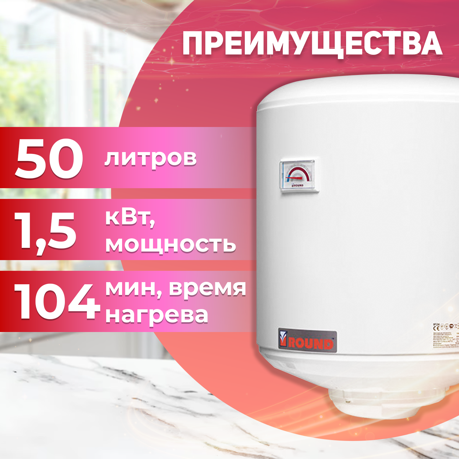 Водонагреватель ATLANTIC Standart ROUND 50 (573x433x450) вертикальный, 50л, 1,5кВт, арт. 941153