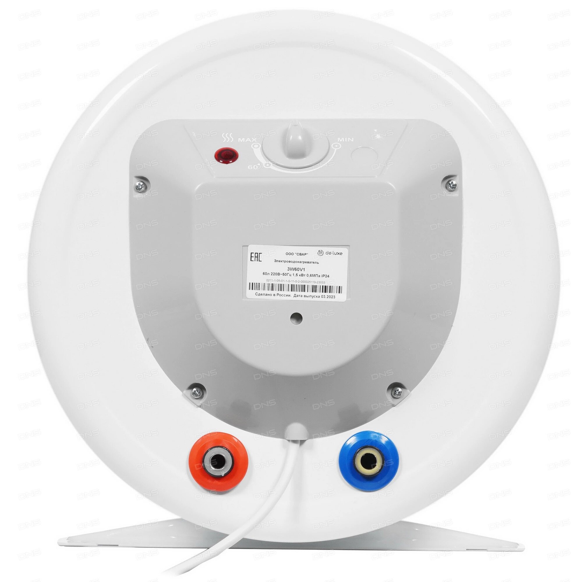 Водонагреватель De Luxe 3W60V1 Объём 60л,мощность 1,5квт,нагрев 2.30ч, вес 20кг